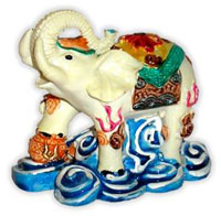 Слон с поднятым хоботом - мощный символ удачи и счастья, мудрости, благоразумия, царского достоинства, непобедимой мощи, долголетия, разума. Слон своим поднятым хоботом притягивает благоприятную водную звезду по системе "Летящие звезды Сань Юань".
