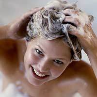 Перед мытьем волосы предварительно нужно хорошо расчесать, особенно если они длинные. На хорошо смоченные теплой водой волосы наносится мыльная пена и энергично кончиками пальцев, но не ногтями, втирается в кожу головы.