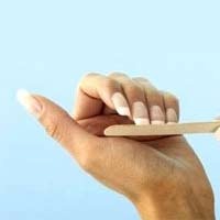 Пилочкой придайте форму ногтю, ваши движения должны быть в одном направлении, так вы предотвратите расслаивание ногтя. Важно также обрабатывать сухие ногти. Используйте сначала крупнозернистую пилочку для укорачивания ногтя и придания ему желаемой формы, а потом более мелкозернистую пилочку для зашлифовки краев.