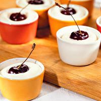 В середину каждой формочки поместить по 1 вишне веточкой вверх. Поставить в холодильник на 2 ч.
