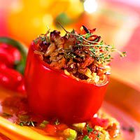 Фаршированный болгарский перец – это классика осеннего кулинарного жанра. Фаршируют его, как правило, мясным фаршем с рисом, а подают со сметаной. Это простое и сытное блюдо готовили мамы и бабушки, а сейчас, с ностальгией по домашним обедам, периодически ставим на стол и мы.