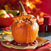 Готовимся к веселому празднику Хэллоуин, а потому предлагаем вам рецепты в которых используется тыква. Это блюдо можно готовить как в целой тыкве, так и в половинке, которую можно прикрыть фольгой, чтобы начинка не пригорала и тушилась равномерно.