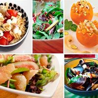 Изначально салат – это холодное блюдо из овощей и зелени, приправленное маслом со специями. В современной интерпретации салат может быть теплым и даже горячим, сладким, мясным, фруктовым, сырным, рыбным. Салат может заменить десерт и второе блюдо. Легко придумать свой салат, соединив любые любимые ингредиенты в любых пропорциях. И даже составить праздничное меню исключительно из одних салатов.