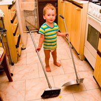 Как сделать так, чтобы ребенку работа по дому всегда была в радость? А если не в радость, то хотя бы не в тягость? Прежде всего, забудьте о том, что вы сами страдаете от выполнения домашних обязанностей. Во время уборки на вашем лице должна сиять улыбка. Дети всегда с радостью занимаются тем, что нравится их родителям. Ребенок должен осознавать значимость деятельности, которую вы выполняете. Поэтому занятие это всегда должно нравиться тем, кто подает пример (в данном случае, это родители). Объясните малышу, почему выполнение домашней работы так важно для семьи. Представьте вместе с ребенком, что было бы, если бы полы не мылись месяц или год. Карапуз должен представить себе всю серьезность ситуации.